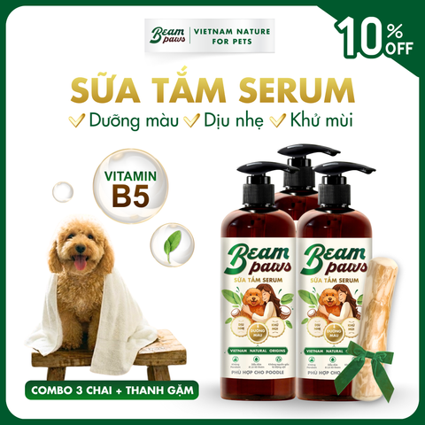 MUA 3 SỮA TẮM SERUM DƯỠNG LÔNG POODLE VỚI LÁ XÔ THƠM TẶNG 1 THANH GẶM LẺ SIZE M Sữa tắm serum Beam Paws cao cấp dành cho cún Poodle làm mềm mượt và nuôi dưỡng bộ lông khỏe