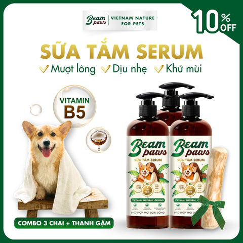 MUA 3 SỮA TẮM SERUM DẦU DỪA DƯỠNG ẨM TỰ NHIÊN TẶNG 1 THANH GẶM LẺ SIZE M Sữa tắm serum Beam Paws cao cấp dành cho các bé cún nuôi dưỡng da và lông từ tinh chất thiên nhiên